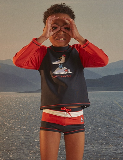 An exclusive selection of swimwear and beach accessories for your children aged 6 months to 11 years.